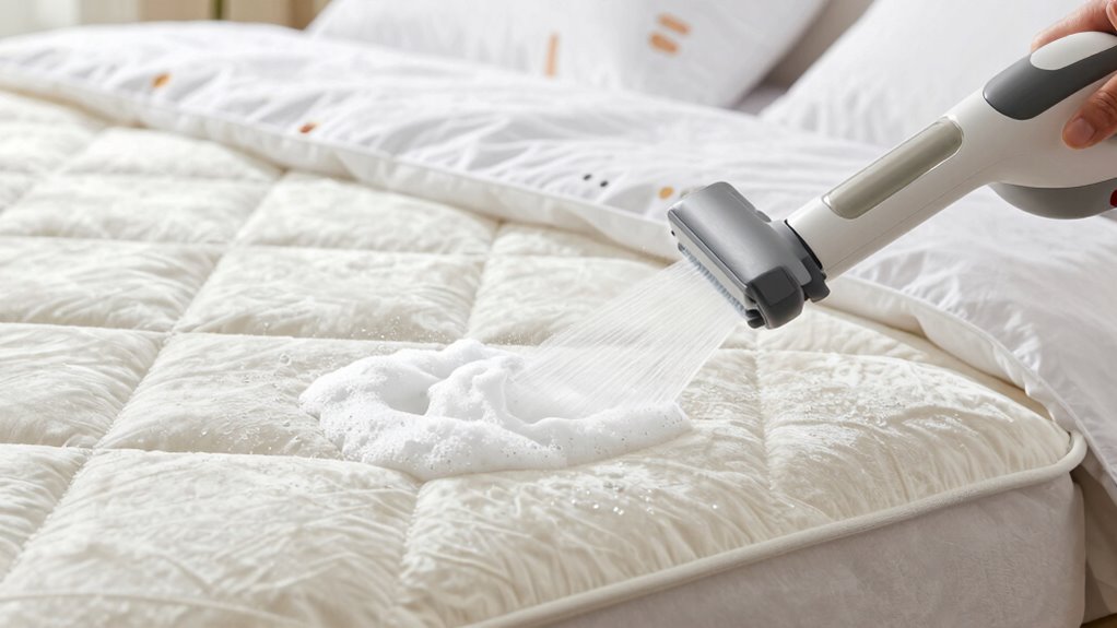 Cleaning foam mattresses requires special care to prevent damage to the delicate materials. Use gentle methods like spot cleaning with a mild detergent and water. Avoid oversaturating the foam, which can lead to mold and odors. For allergy prevention, regularly vacuum your mattress to remove dust mites and allergens. When removing stains, act quickly with a mixture of baking soda and water or a stain remover suitable for foam. Always test cleaning solutions on a small area first. Understanding filtration and proper maintenance can help extend the life of your mattress and keep it feeling fresh. Additionally, choosing appropriate cleaning products designed for foam can further protect your mattress’s integrity. Proper mattress care techniques can also help maintain the comfort and longevity of your foam mattress. Regularly inspecting your mattress for signs of wear and air quality issues can further ensure a healthy sleeping environment. Incorporating ventilation practices can also reduce moisture buildup and improve overall hygiene.