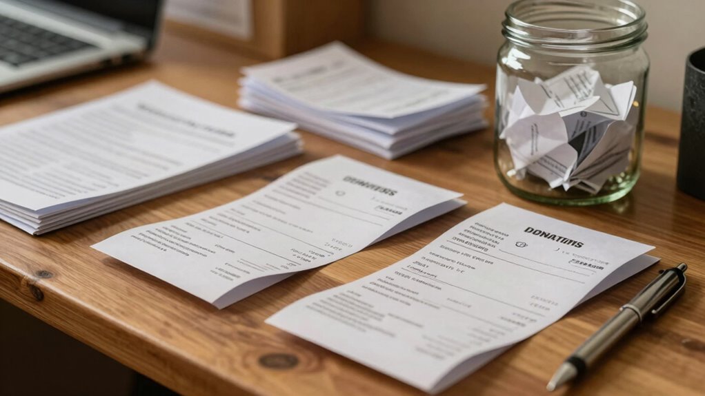Are you aware that your donation receipts can substantially reduce your tax liability? By keeping detailed records of your donations, you can claim a tax deduction when filing your taxes. To do this effectively, you need to preserve your receipts as proof of your contributions. When tax season arrives, include these receipts with your return to substantiate your deduction claims. Proper record keeping ensures you don’t miss out on potential savings and helps avoid issues if your return is audited. Remember, the IRS requires specific documentation for charitable contributions, so always keep your receipts organized and accessible. Using your donation receipts wisely can maximize your tax benefits and make your charitable giving more financially advantageous. Additionally, understanding donation receipts and returns can help you navigate the process more confidently.