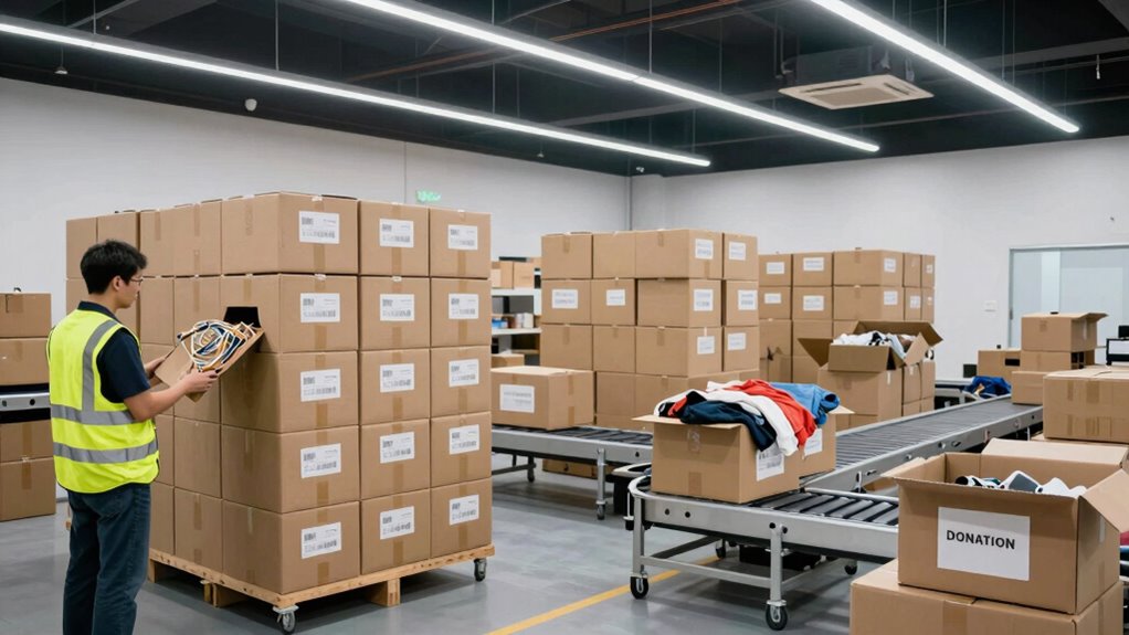 Once your donated items arrive at the retailer’s facility, they undergo a thorough inspection and sorting process. This step is pivotal for effective inventory management, guaranteeing each item is categorized correctly. Retail staff assess the condition of the products, checking for damages or defects, and determine whether they can be resold, refurbished, or need to be discarded. Proper sorting helps streamline operations and reduces waste, ultimately supporting better inventory control. These efforts directly impact customer satisfaction, as items are organized efficiently and meet quality standards. When processes are smooth, customers find what they’re looking for quickly and receive high-quality products. Additionally, understanding appliance and cookware care & maintenance can help retailers extend the lifespan of their inventory and reduce returns. Implementing quality control procedures at this stage ensures consistency and minimizes the risk of defective products reaching consumers. Incorporating product inspection protocols can further enhance the accuracy of sorting and improve overall quality assurance. Regular staff training on product handling can also improve the efficiency of these processes. Emphasizing proper storage techniques is essential for maintaining product integrity during this phase. Overall, this stage guarantees the retailer manages returns responsibly while maintaining a positive shopping experience.