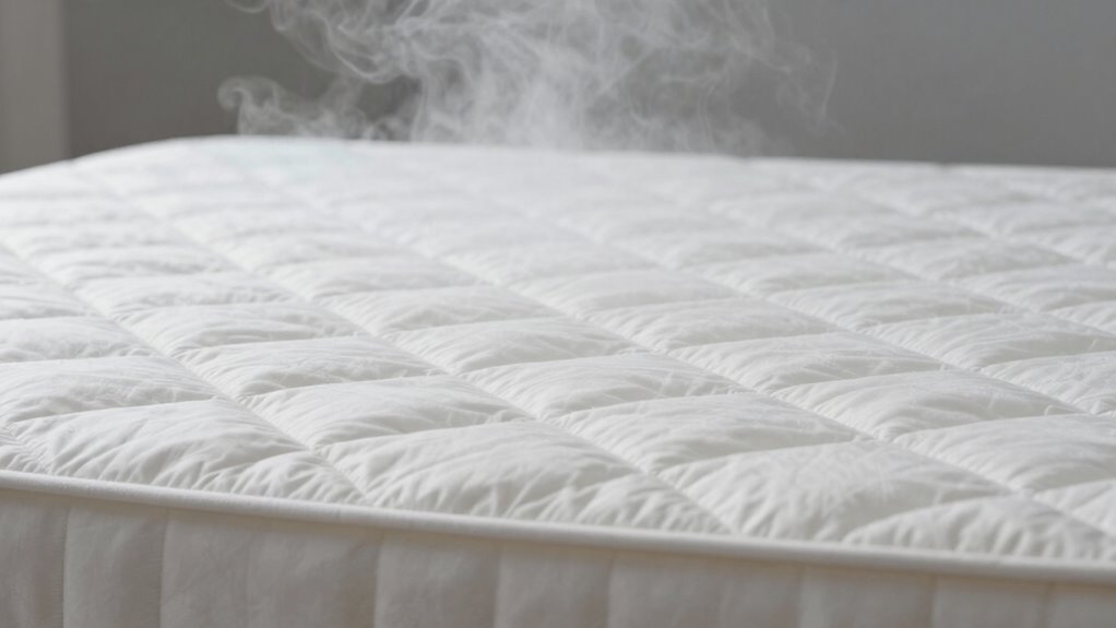 You might notice odors from certain mattress protectors right after unpacking or use. These smells often come from chemical treatments in fabrics, synthetic materials, or residues left from manufacturing. Understanding which materials cause these odors can help you choose a protector that stays fresh. Additionally, fabric composition plays a significant role in odor retention and emission.