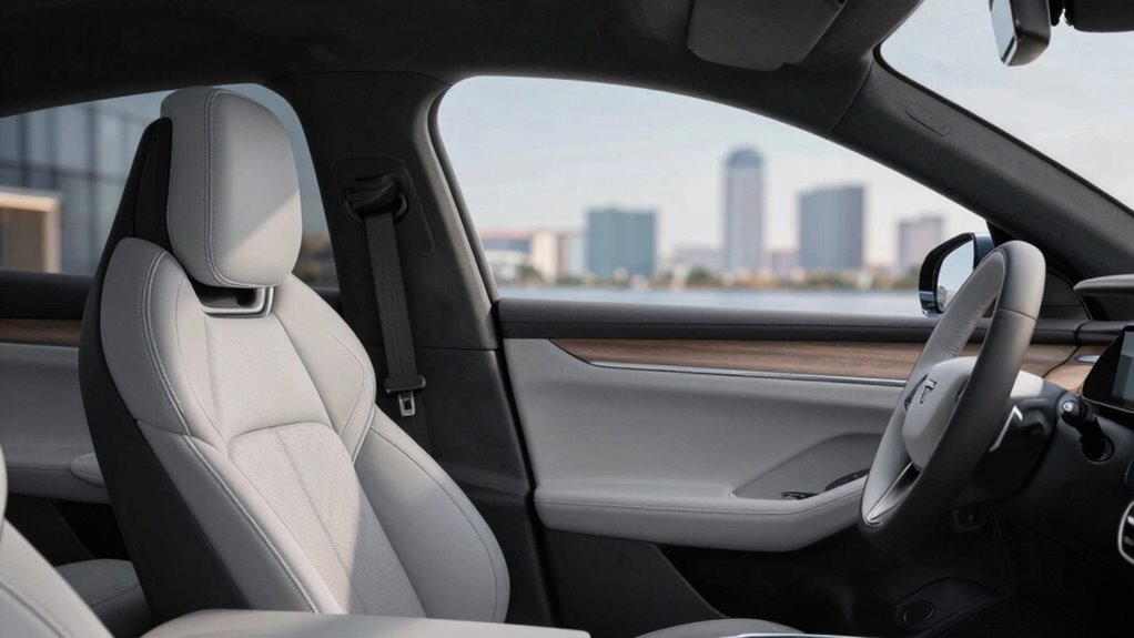Vibration pathways are shaped by various vehicle components that directly impact ride quality. Your seating ergonomics plays a vital role by absorbing and distributing shocks, reducing the sensation of vibrations. Well-designed seats with proper cushioning help isolate you from road bumps and turns. Additionally, climate control systems influence ride comfort by maintaining a stable environment, preventing temperature-induced discomfort that can amplify vibrations. When climate systems operate smoothly, they minimize internal vibrations caused by fans or compressors. Together, these elements work to improve ride quality, making your journey smoother and more comfortable. Proper seating ergonomics ensures your body remains steady, while effective climate control prevents external vibrations from becoming intrusive. Understanding these components helps you appreciate how vehicle design influences your overall ride experience.