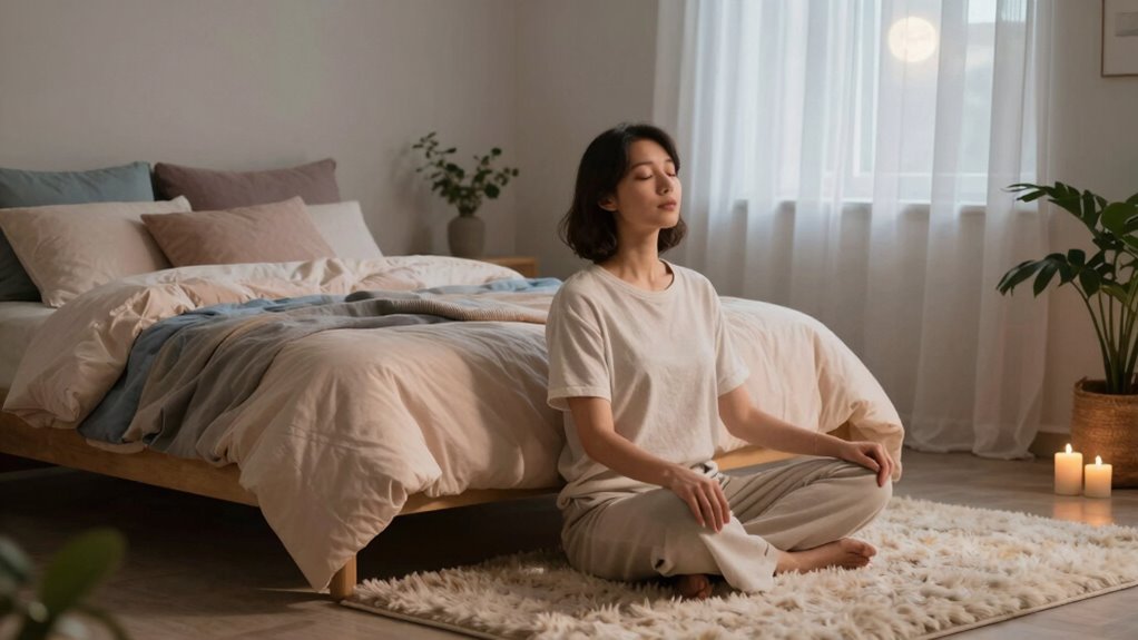 By trying these breathing exercises, you’ll open a sleep so peaceful, it could rival the silence of a mountain peak at dawn. Whether you prefer diaphragmatic, 4-7-8, box, or alternate nostril breathing, each method helps calm your mind and relax your body. Make these practices your nightly ritual, and watch as your nights transform into a sanctuary of serenity. Sweet dreams await when you breathe mindfully—your ticket to the most restful sleep of your life.