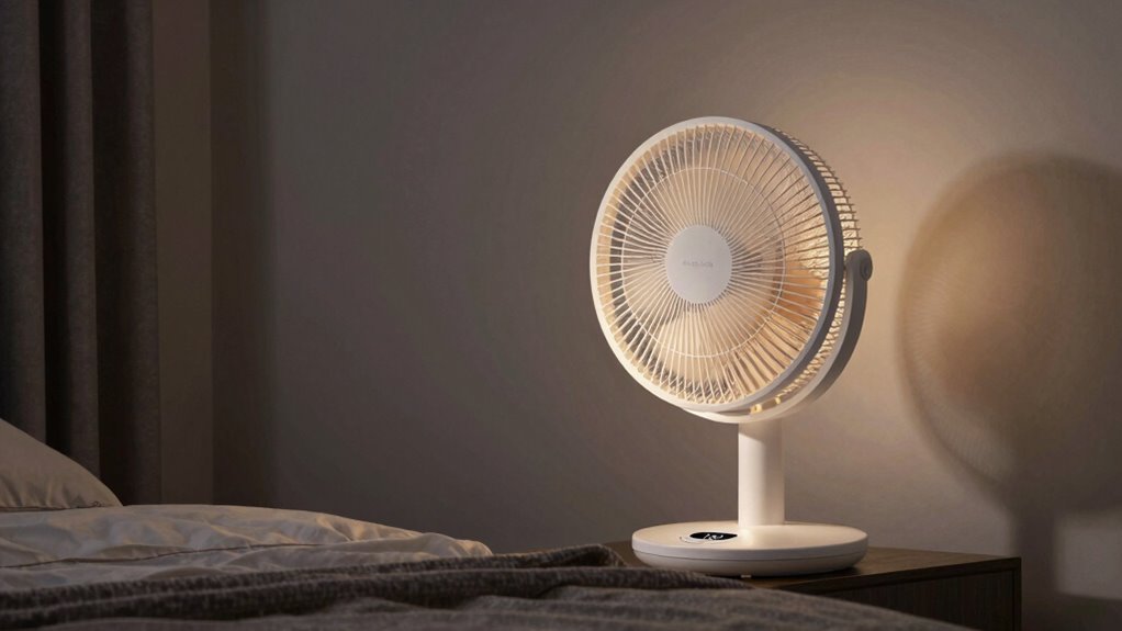 Experiment to find what works best, ensuring the fan noise remains consistent for excellent sleep quality. Additionally, understanding white noise and its effects can help you tailor your environment for optimal rest. Incorporating consistent sound levels can further minimize disturbances during sleep cycles, leading to more restful nights. Recognizing the importance of sound masking can also contribute to a more peaceful sleep environment. Moreover, choosing the right fan type and placement can help optimize the sound environment for restful sleep.