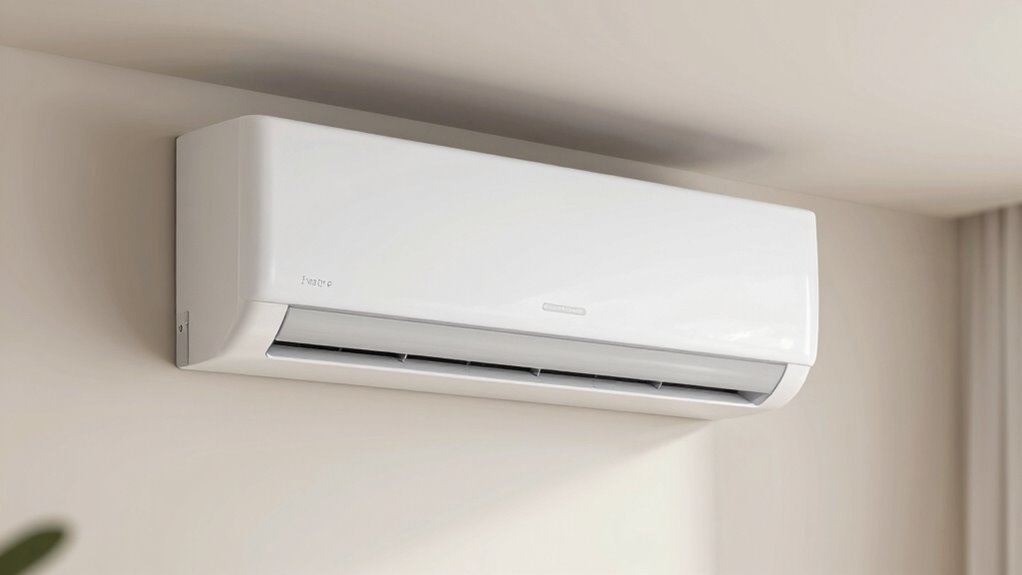 Because inverter ACs maintain a continuous compressor operation, they run at variable speeds rather than turning on and off repeatedly. This steady operation reduces mechanical stress, helping preserve the compressor lifespan over time. It also means you need to evaluate installation considerations carefully, as proper setup guarantees the best performance and noise reduction. Proper installation is crucial for maximizing the benefits of inverter technology and ensuring optimal noise reduction. Here’s how it benefits you: