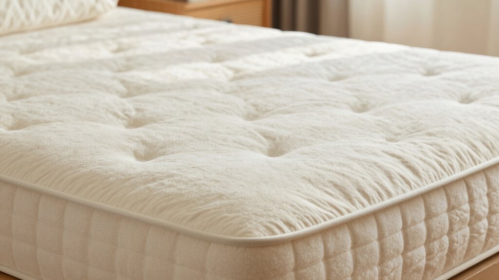 Humidity impacts your mattress firmness through moisture absorption and material expansion. When humidity rises, your mattress absorbs moisture, causing the materials to expand and soften, making it feel less firm. Conversely, low humidity leads to moisture loss, causing the materials to contract and stiffen. This constant cycle of expansion and contraction can alter your mattress’s feel over time, making it seem less supportive even though it’s not physically shrinking.