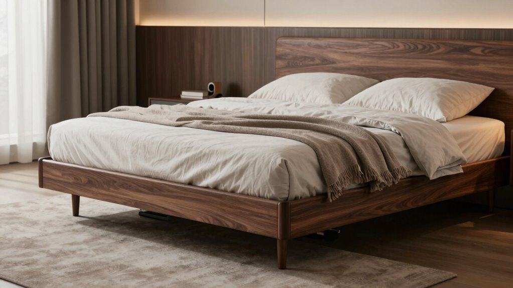 Oh, sure, because who wouldn’t want a bed frame that moonlights as a personal amusement park ride? In all seriousness, look for frames with reinforced slats, sturdy brackets, and smooth-operating hinges. These features help motorized adjustments work seamlessly without squeaks or jamming. Plus, a frame with pre-drilled holes for wiring keeps things neat and safe, making your adjustable bed experience smooth as silk.