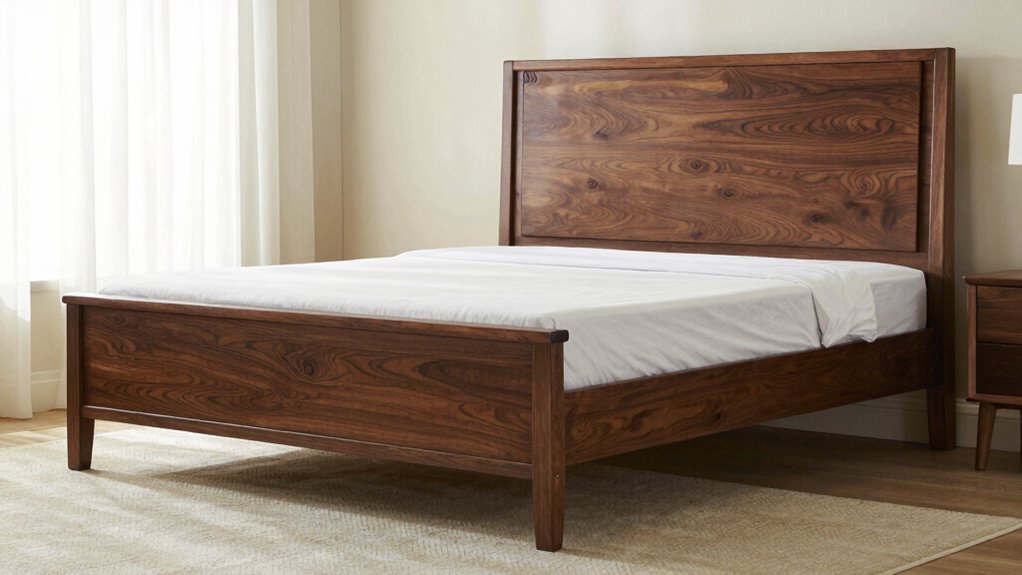 To keep my wooden bed frame in top shape, I regularly dust it with a soft cloth and avoid harsh chemicals. I also check for loose screws and tighten them as needed. Applying a wood conditioner or polish every few months helps maintain its luster and prevents cracks. I make sure to keep it away from excessive moisture and direct sunlight, which can warp or fade the wood over time.