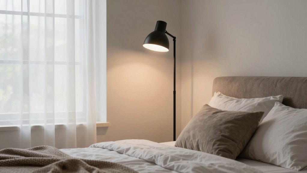 Additional features can considerably boost the convenience and functionality of a dimmable floor lamp in the bedroom. Remote controls, foot switches, and timers make it easier to operate the lamp without bending down or reaching for a switch. Multi-mode lighting options, like night mode or reading mode, help create the perfect ambiance for different activities. Memory functions are handy, saving your last brightness and color settings for quick adjustments later. Adjustable color temperatures and stepless dimming give you versatile lighting to match your mood or task. Safety features such as stable bases, overheat protection, and water resistance ensure reliable and secure use. These added features not only enhance your experience but also make your lighting setup more adaptable and safe.