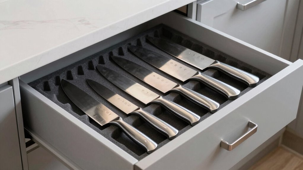 Modern in-drawer knife organizers include safety features like cushioned slots to prevent blades from dulling or chipping, and individual compartments that keep knives separated, reducing the risk of accidental cuts. Some models even have locking mechanisms or soft-close drawers to prevent sudden movements. I find these features give me peace of mind, especially when handling sharp knives in a busy kitchen. Safety is a top priority for me, and these organizers help achieve that effortlessly.