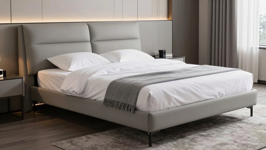 Selecting the right king adjustable bed base with wall hugger features means considering the range of adjustable options available. I look for models that offer head and foot elevation to customize comfort and support. Some beds include pillow tilt and lumbar support, which add extra relaxation benefits. Preset positions like zero gravity and anti-snore modes are convenient for quick, personalized adjustments. Programmable memory settings are also valuable, letting me save preferred positions for different activities. Additionally, extra features like massage functions, under-bed lighting, and USB ports can enhance convenience and comfort. These options allow me to tailor my sleep experience and make daily routines easier, ensuring I get both comfort and functionality from my adjustable bed base.