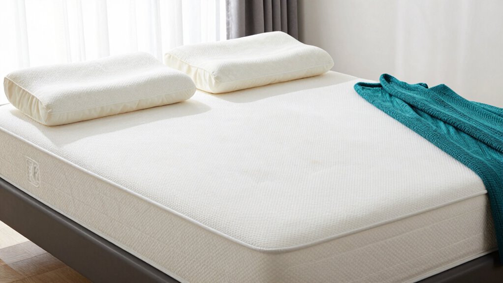 An organic latex mattress topper designed for side sleepers offers targeted pressure relief and spinal alignment, making it an excellent upgrade for those seeking a healthier sleep environment. Made from 100% natural latex, it features honeycomb-shaped pores that improve airflow and temperature regulation. The zoned support design provides softer zones for shoulders and firmer support for hips, promoting proper spinal alignment. With a medium-firm feel and ergonomic support, it prevents sinking and guarantees stability throughout the night. Hypoallergenic and eco-friendly, this topper enhances comfort while supporting a sustainable lifestyle, helping side sleepers wake up refreshed and free from pressure-related discomfort.