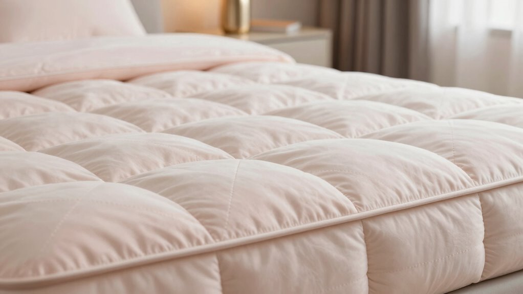 When selecting a mattress for light sleepers, the quality of supportive materials plays a vital role in ensuring restful nights. High-quality options like CertiPUR-US certified foam and pocket coils offer consistent, reliable support, reducing unnecessary movement and disturbances. Memory foam with zoned support layers responds gradually to pressure, providing targeted relief and minimizing sudden shifts that can wake you up. Breathable, hypoallergenic fabrics and cooling gel-infused foams improve airflow and help regulate temperature, making the mattress more comfortable. Reinforced edge support with durable foam or coils maximizes the sleep surface, preventing sagging and offering stable support across the entire bed. Additionally, independent pocketed coils or responsive foam layers reduce motion transfer, so you stay undisturbed even if your partner moves.