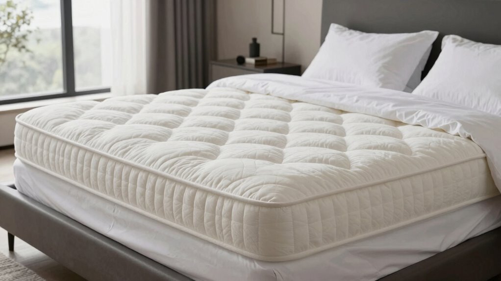 Think of heavy sleepers as the sturdy oak in a forest; they need materials that can withstand their weight without losing shape. I recommend memory foam or latex toppers—these materials offer exceptional support and durability. They mold to your body like a glove, providing relief and maintaining their integrity over time. These options act like a reliable anchor, ensuring your sleep stays comfortable night after night.