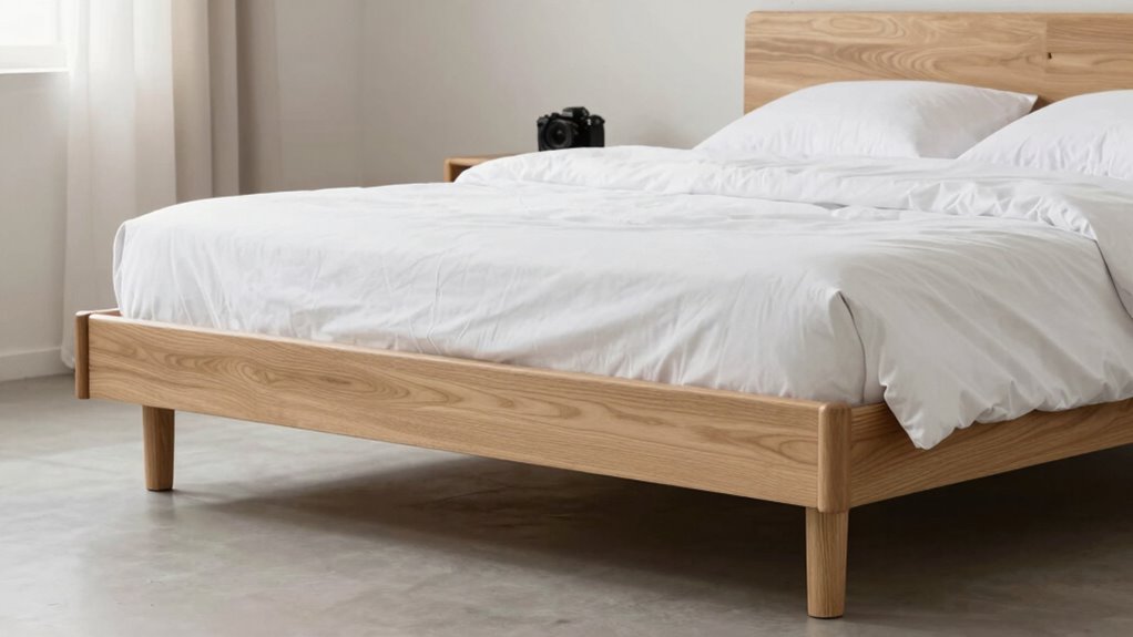 To keep your wooden bed frame looking pristine, I recommend regular dusting and wiping with a soft cloth. Keep away from harsh chemicals that can harm the finish. I also suggest applying a quality wood polish periodically to preserve its luster and longevity. Ventilate your bedroom to prevent moisture buildup, which can warp wood. With consistent care, your bed frame will continue to charm and cherish for years to come.