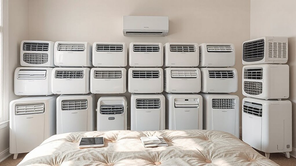 Looking for the 15 best portable AC units for small bedrooms in 2026? I’ve found options that combine compact design, easy mobility, quiet operation, and smart features like WiFi control and timers. Many models offer multiple functions—cooling, dehumidifying, and fan modes—plus eco-friendly refrigerants. If you want to cool efficiently without sacrificing space or comfort, there are plenty of trusted choices. Keep going to discover the top picks and what makes them stand out.