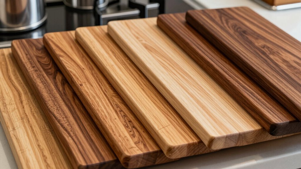 Choosing a wooden cutting board that stands up to daily use means paying attention to material durability and quality. High-quality boards are made from dense hardwoods like maple, walnut, or acacia, which resist cuts and warping over time. These woods provide strength and stability for heavy chopping. A good board is often finished with food-safe oils or sealants that protect against moisture and bacteria, extending its life. Thickness matters too—around 0.5 to 1 inch—adding stability and reducing the risk of cracking. The grain orientation and craftsmanship, such as end grain versus edge grain, influence how well the board heals minor cuts and how long it lasts. Proper maintenance, including regular oiling and hand washing, is essential to preserve its durability and quality.